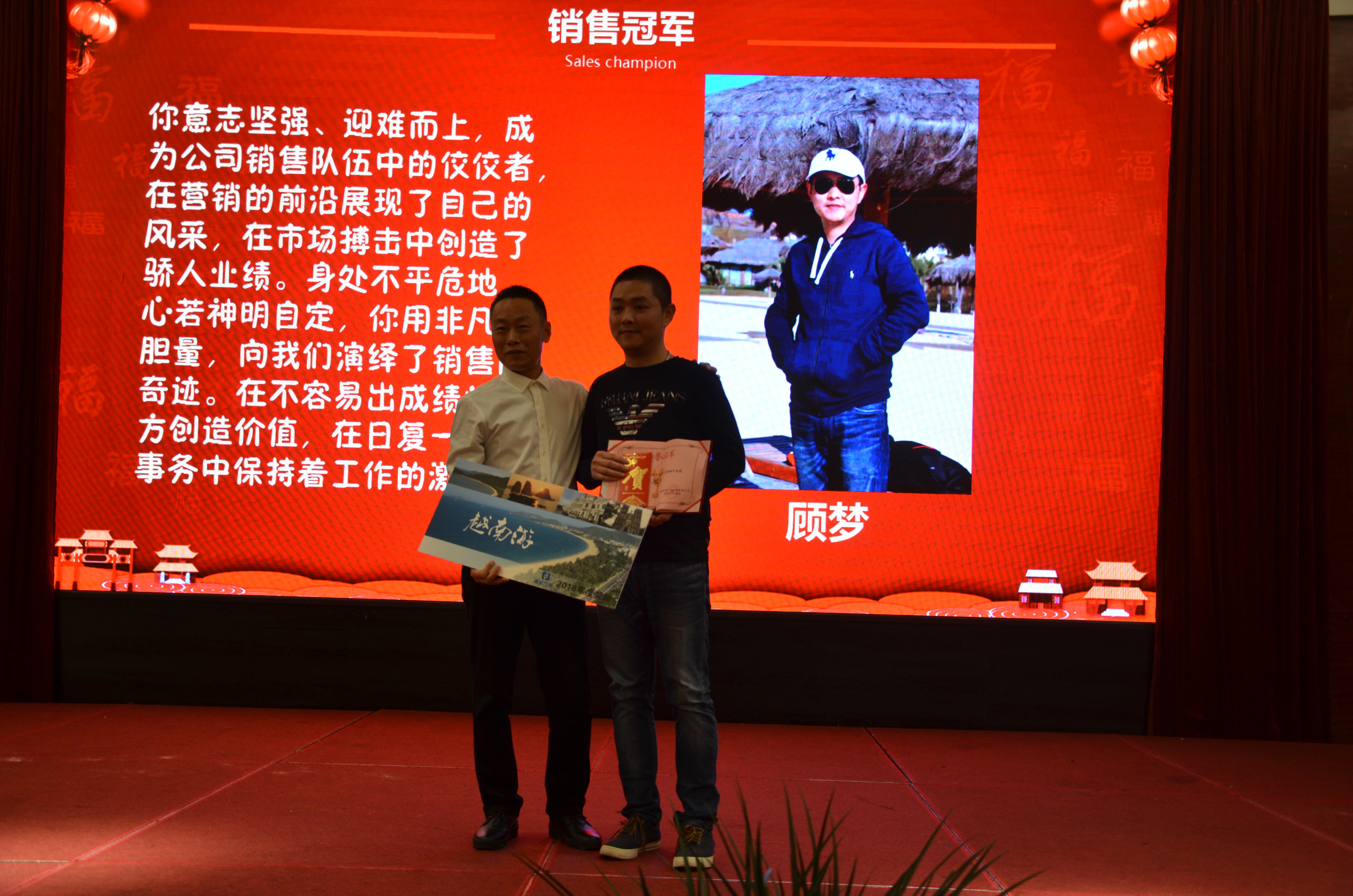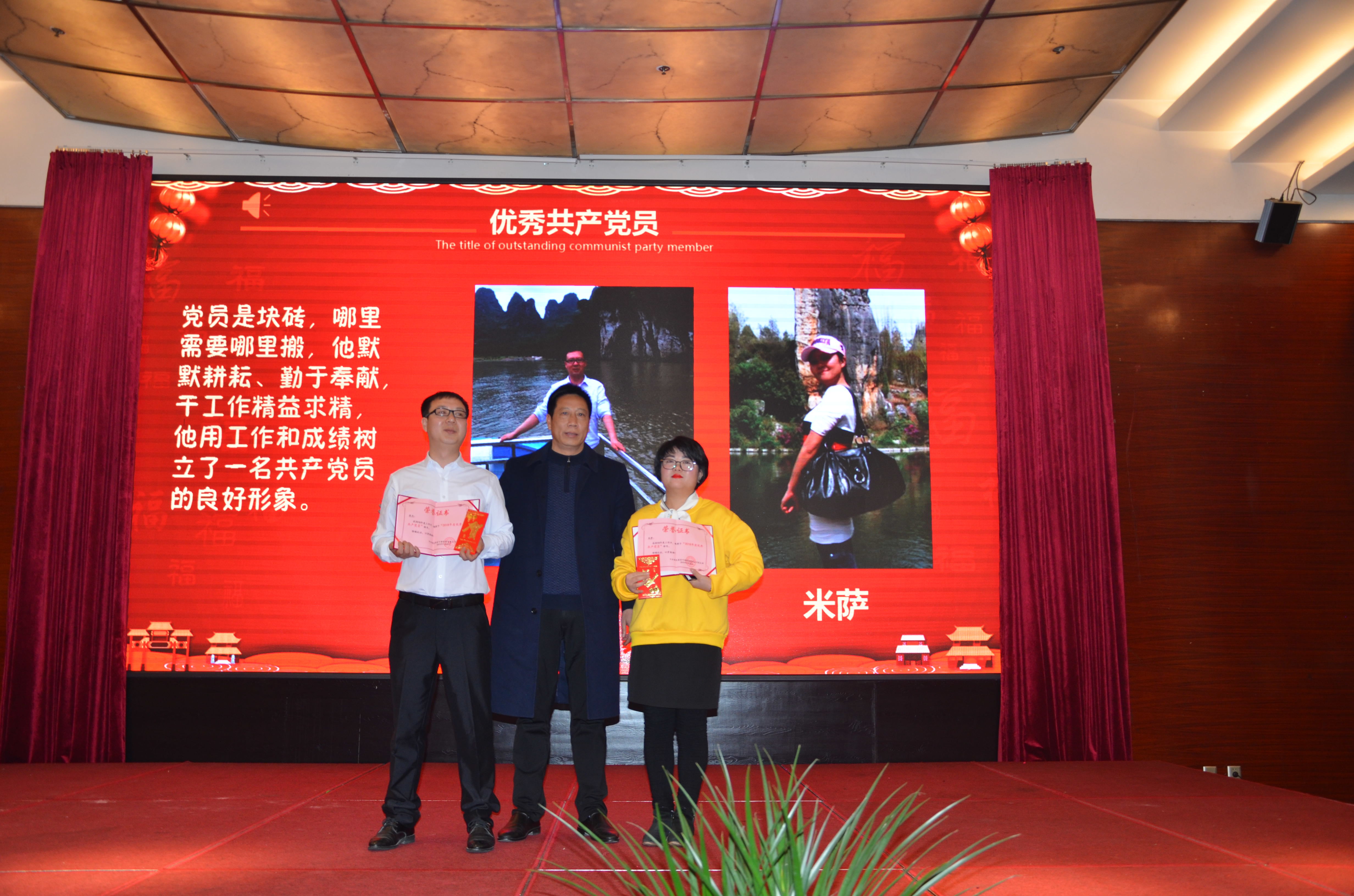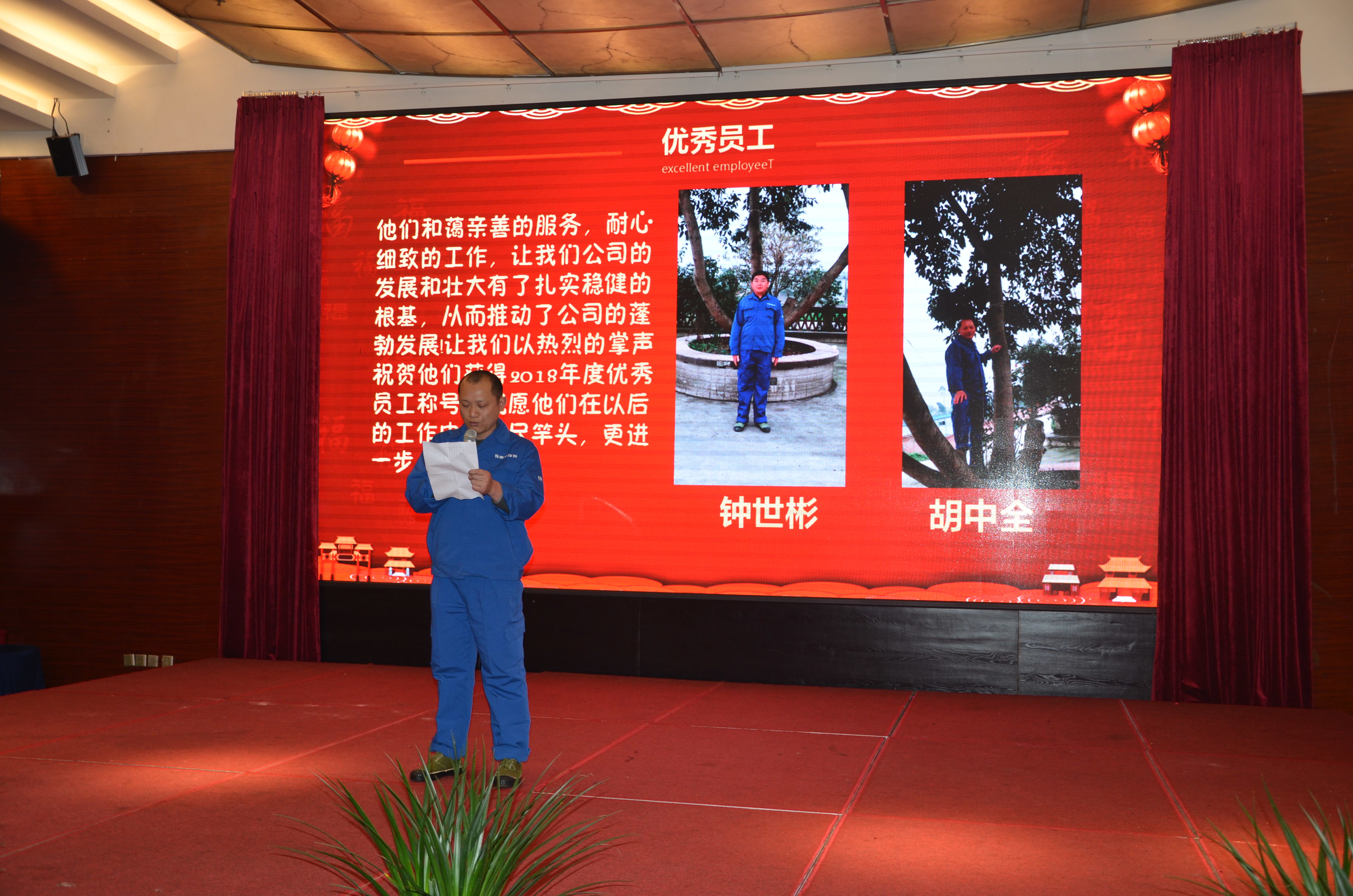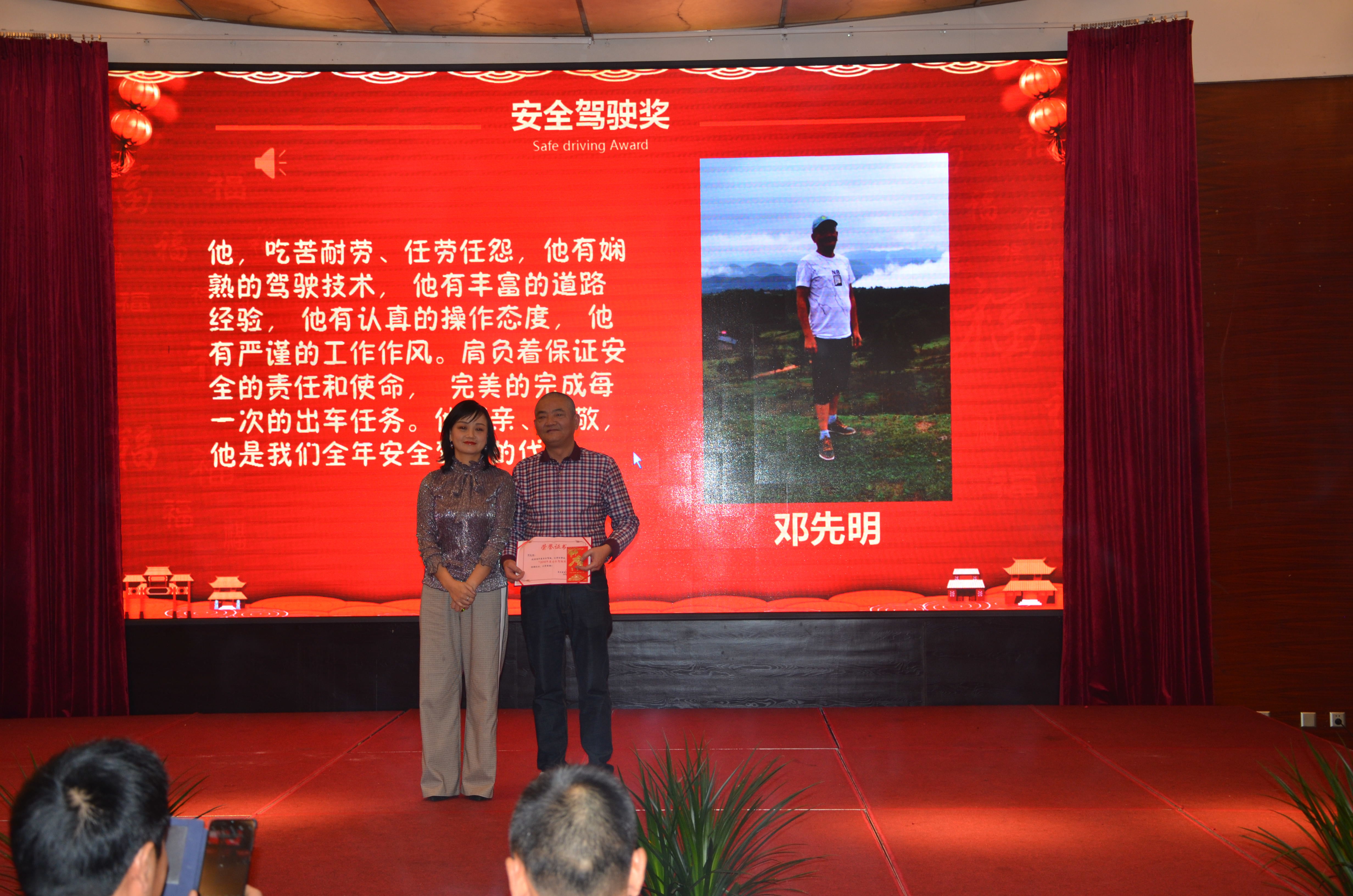随后依次颁发2018年度优秀员工(2名)、2018年度优秀工会会员(4名)、2018年度优秀党员(2名)、2018年度先进班组(1名)、2018年度安全驾驶(1名)、2018年度销售冠军(1名)奖项。